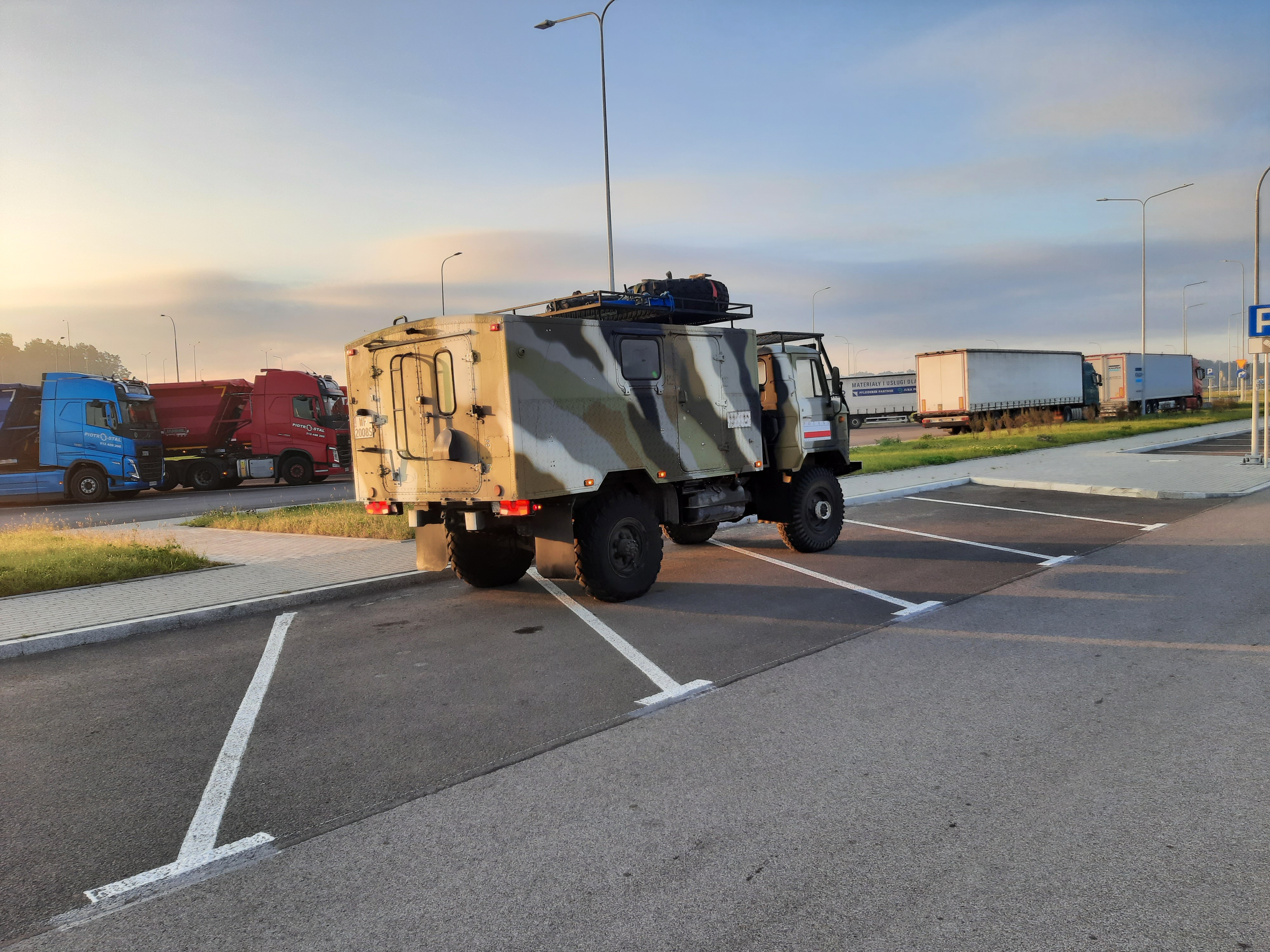No to kłopot na całego, może kupię coś lepszego w Gruzji tylko jak tam dojechać na takich „kartoflakach”? Ratunkiem okazał się pan Tadeusz który zajmuje się sprzedażą części do UAZów i GAZów z Jarosławia. Załatwił 4 nowe opony i umówiłem się że przyjadę do niego, a przy okazji może jeszcze coś dokupię do samochodu. Nocleg wypadł 100 kilometrów od Rzeszowa. Pierwsza noc na wyprawie, trochę zimno w salonie/sypialni było 6 stopni, nad ranem obudziłem się z zimna i chociaż mam ogrzewanie postojowe to jeszcze nie włączyłem. Uznałem że muszę się przyzwyczajać do niskich temperatur bo jak będzie naprawdę zimno to co wtedy włączę? Na Syberii zepsuło mi się ogrzewanie i spałem dwie noce przy temperaturze w samochodzie -12 stopni, na dworze było -25 stopni. Później jak już zjechałem z gór (gdzie tak było zimno) uznałem że temperatura -10 na zewnątrz to już jest prawie ciepło, a przy -5 otwierałem drzwi na noc bo było mi za gorąco. Tak i teraz trzeba zacząć się hartować bo może być naprawdę zimno.