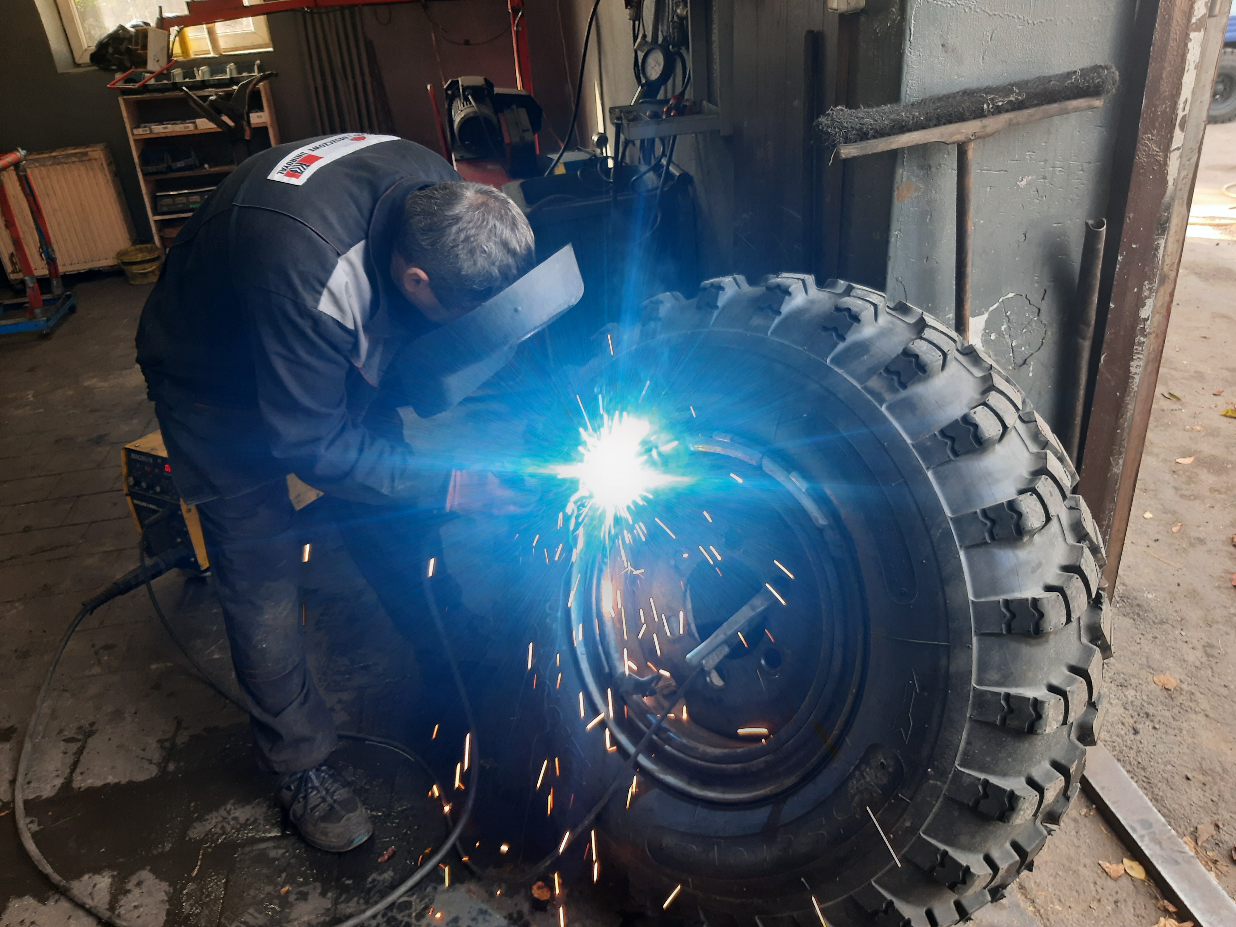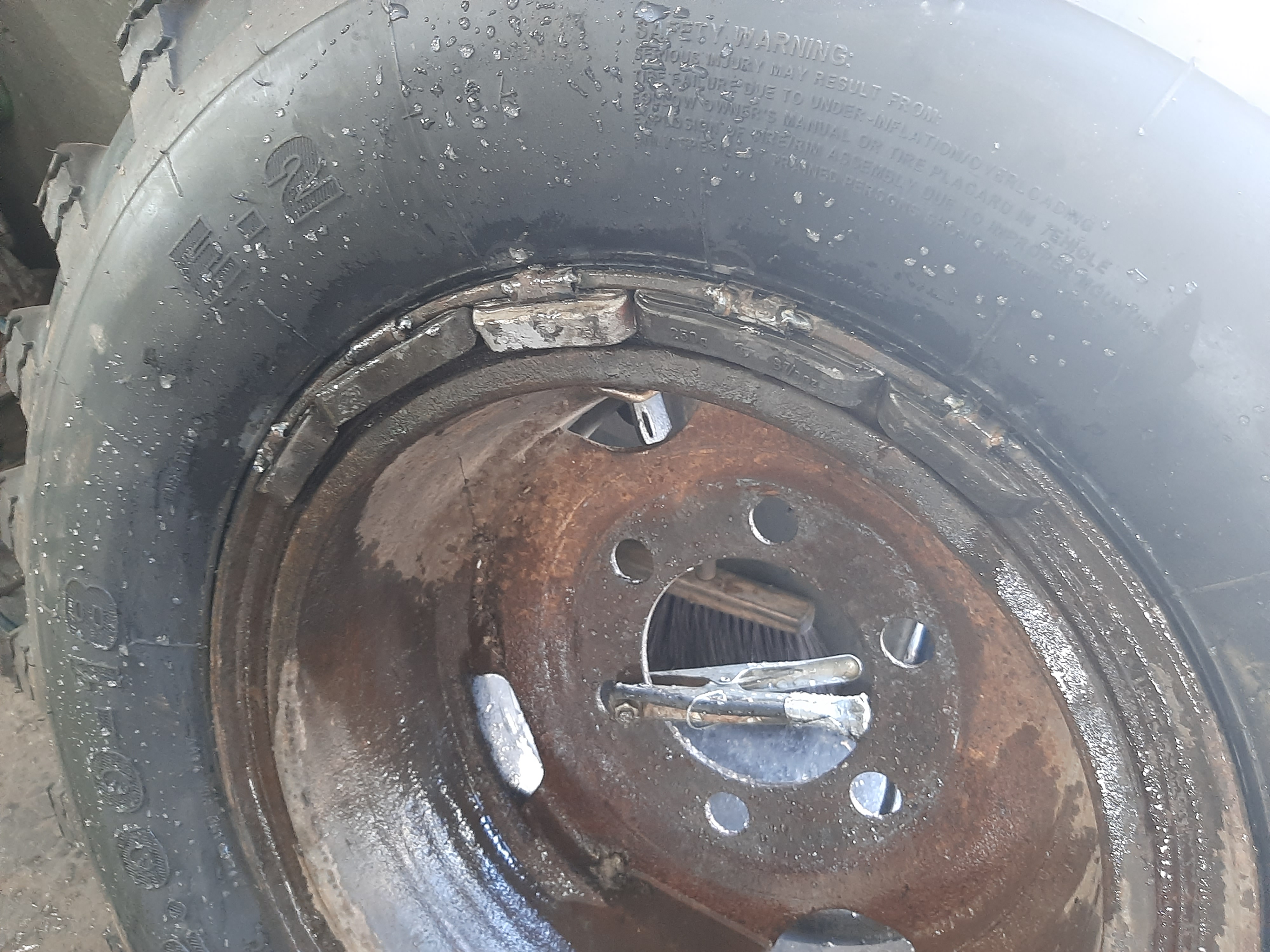 Rano pojechałem do stacji diagnostycznej dla autobusów rozumując że może przyczyna tego „bujania” jest gdzieś w (nazwijmy to) zawieszeniu. Nic z tych przypuszczeń, tu w zawieszeniu wszystko w porządku. Diagności poradzili mi żeby jechać do wulkanizacji dla Tirów, tam sprawdzą felgi i opony. Tak też zrobiłem i po odstaniu paru godzin w kolejce panowie wzięli się za mój samochód. Diagnoza była prosta, krzywe felgi (nawet źle zespawane), stare z dużą ilością rdzy, do tego opony terenowe, to nie może być udane połączenie. Jednak na moje usilne prośby wyważyli mi koła z tyłu dokładając średnio po 1,5kg ciężarków, jednocześnie informując mnie że trochę pomoże ale nie za wiele. Faktycznie nie wiele lepiej. Jednak jestem już tak zdeterminowany że postanowiłem że jadę w stronę granicy. Przejechałem trochę za Jarosław, no nie da się tak jechać, mam wrażenie że oprócz tych opon jeszcze coś mi charczy/zgrzyta. Trudno tak samemu ocenić czy to faktycznie coś, czy tylko mi się tak wydaje. Zatrzymałem się na stacji benzynowej w miejscowości Mokra, tam poszedłem popytać o jakiegoś mechanika. Pan ze stacji skierował mnie do warsztatu, który był nie opodal. Właściciel warsztatu Rafał Bodzioch od razu zainteresował się moimi problemami, ale ponieważ już się ściemniało to umówiliśmy się na rano na czwartek. Na noc zostałem w hotelu pod Jarosławiem.