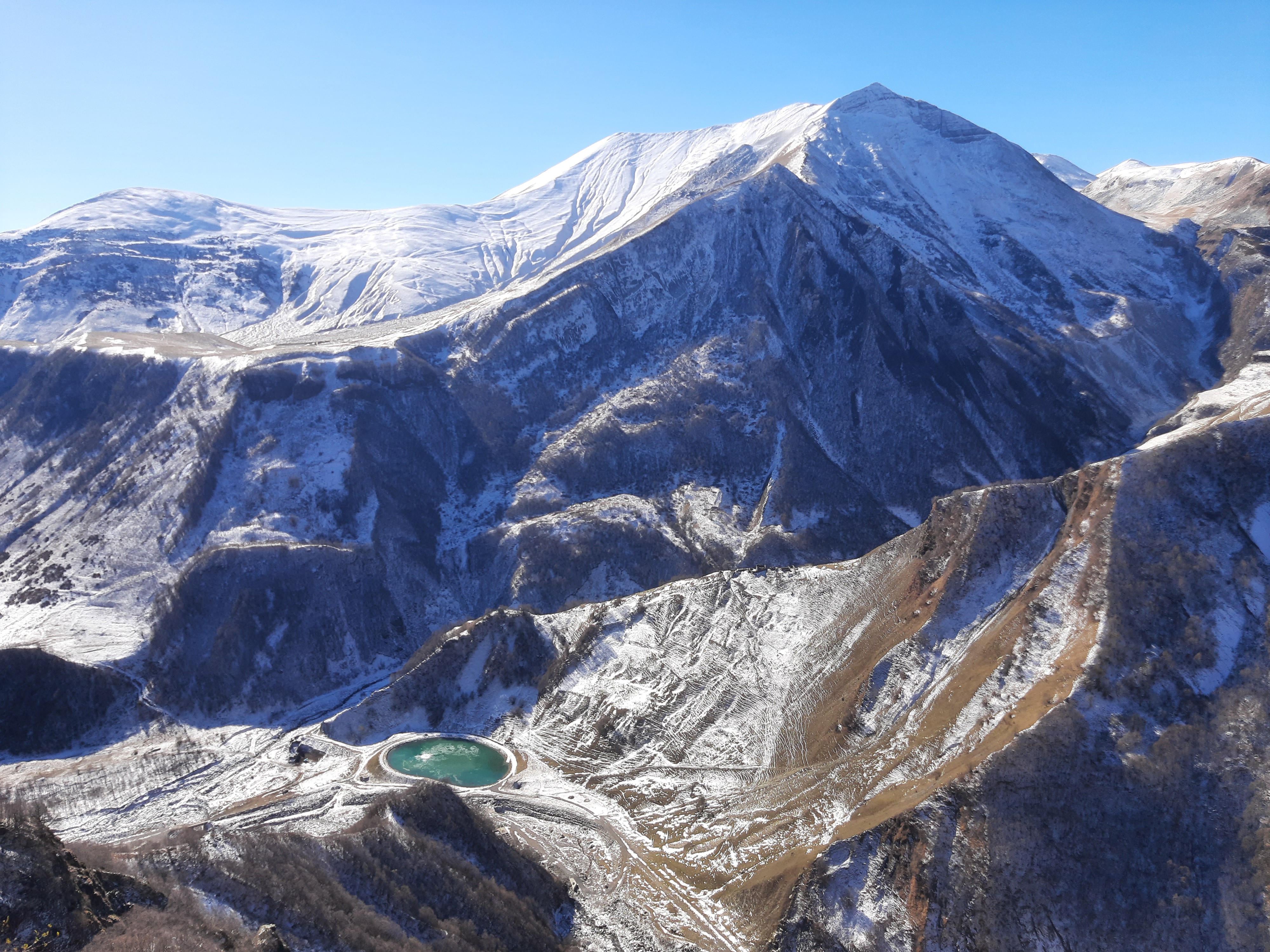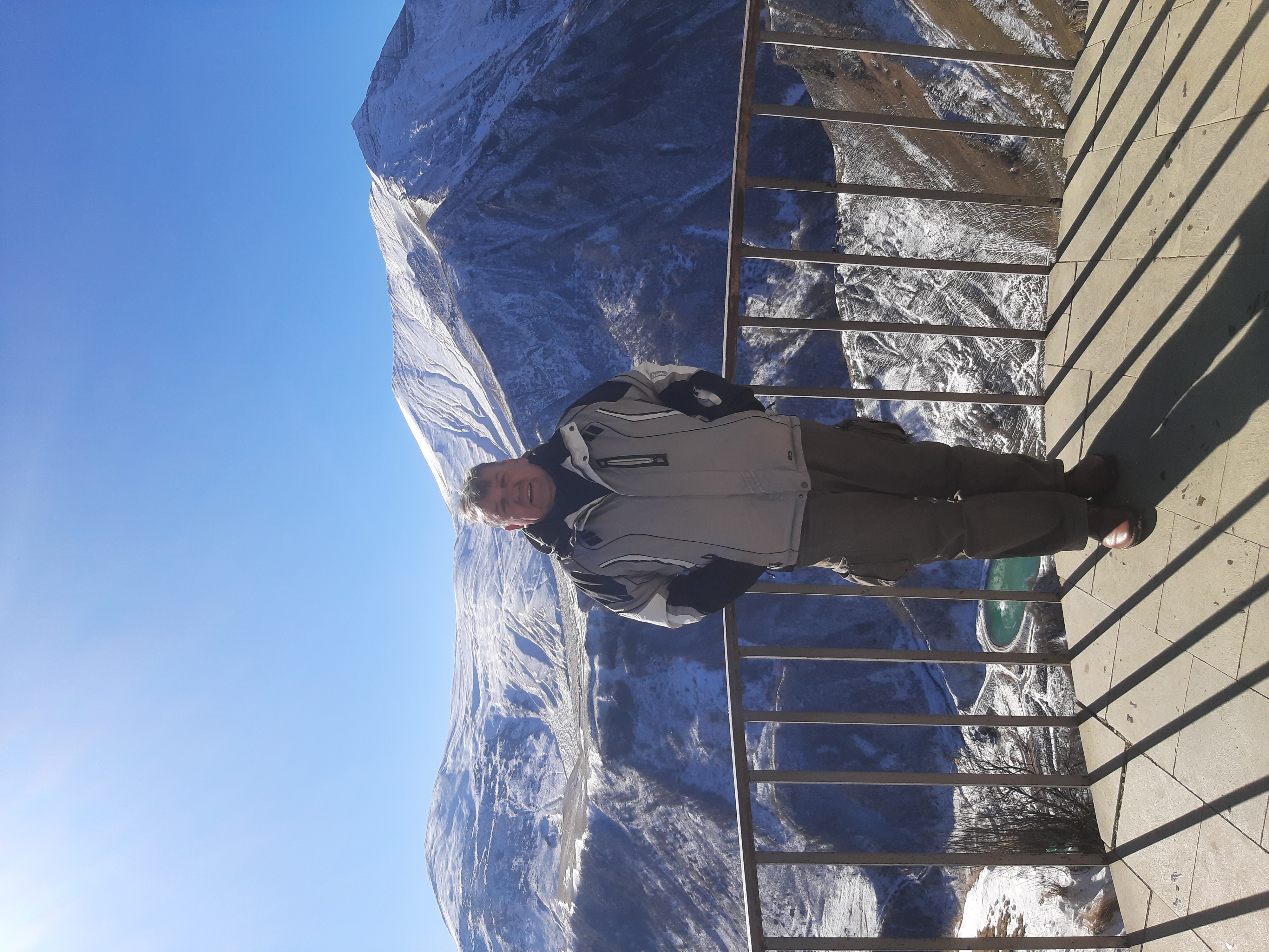 Czas w podróży 3 godziny, ilość przejechanych kilometrów – 120. W nocy było – 12, ale ja spałem w hotelu tak więc taka temperatura mi nie straszna. Poczekałem do południa jak się ociepliło i wyruszyłem w drogę. Jezdnia czarna, ale miejscami tam gdzie słońce nie ogrzało to były małe lodowiska, szczęśliwie jakoś jechałem. Przy okazji podziwiałem też piękno gór, które były przysypane śniegiem. Zatrzymałem się na jakimś parkingu z platformą widokową i zrobiłem sobie fajne zdjęcia. Jeszcze zatrzymałem się na śniadanie i w pięknych okoliczności przyrody zjadłem jajecznicę. W pewnym momencie usłyszałem jakiś inny dźwięk, a ponieważ do wszystkich już dźwięków byłem przyzwyczajony, to ten nowy mnie zaniepokoił. Z upływem czasu z ledwo usłyszanego zrobił się mocny hałas. No to nie wesoło pomyślałem zwłaszcza że dźwięk pochodził z okolicy silnika. Muszę coś z tym zrobić i to szybko. Po raz kolejny dało o sobie znać moje szczęście wyprawowe, jadąc na dół zobaczyłem jakiś warsztat (co było naprawdę dużym szczęściem), taki dla ciężarówek. Pogadałem z kierownikiem, a ponieważ już było późno umówiliśmy się że przyjadę rano (rano to u nich 10) i oni zobaczą co tak hałasuje.