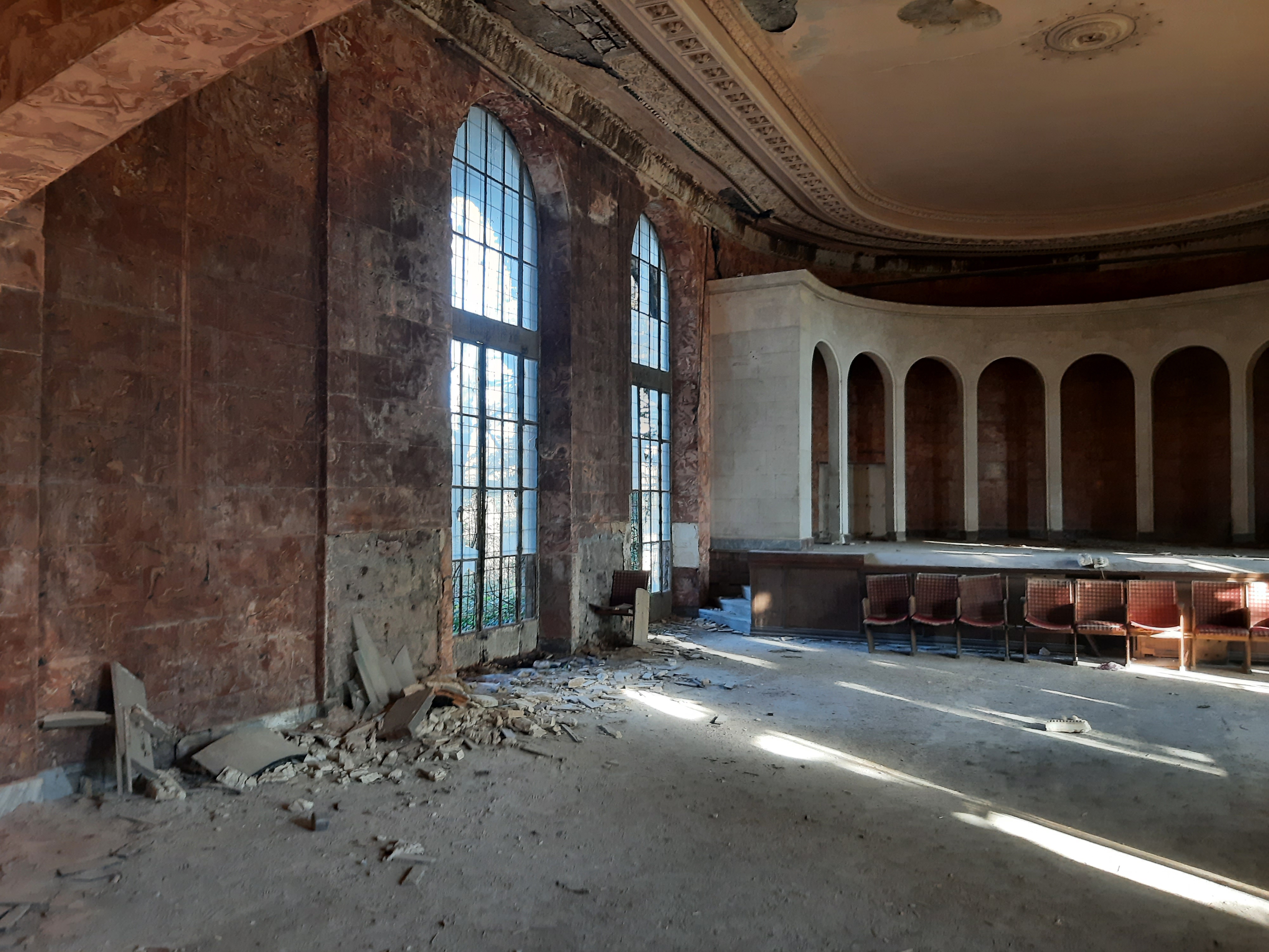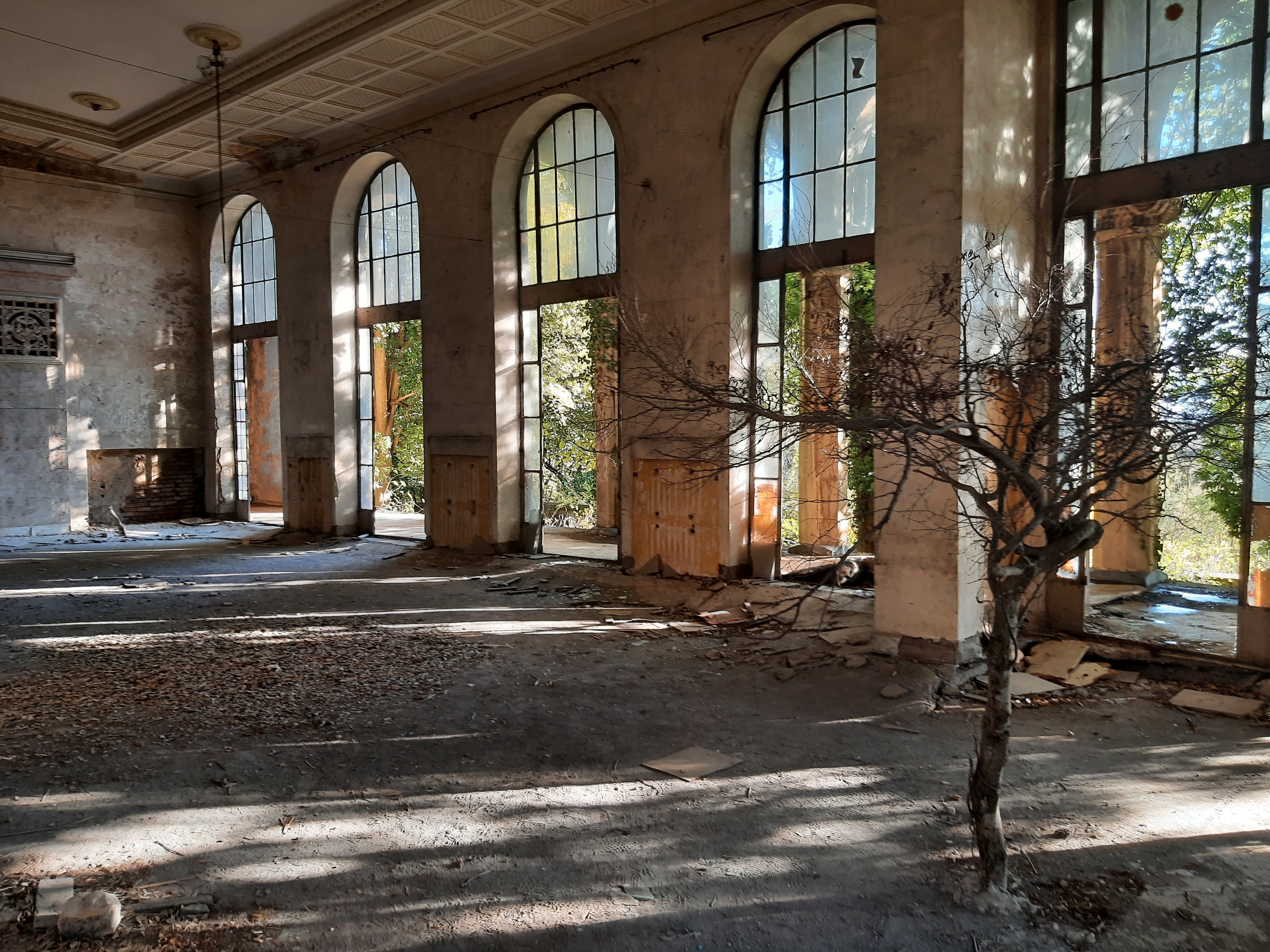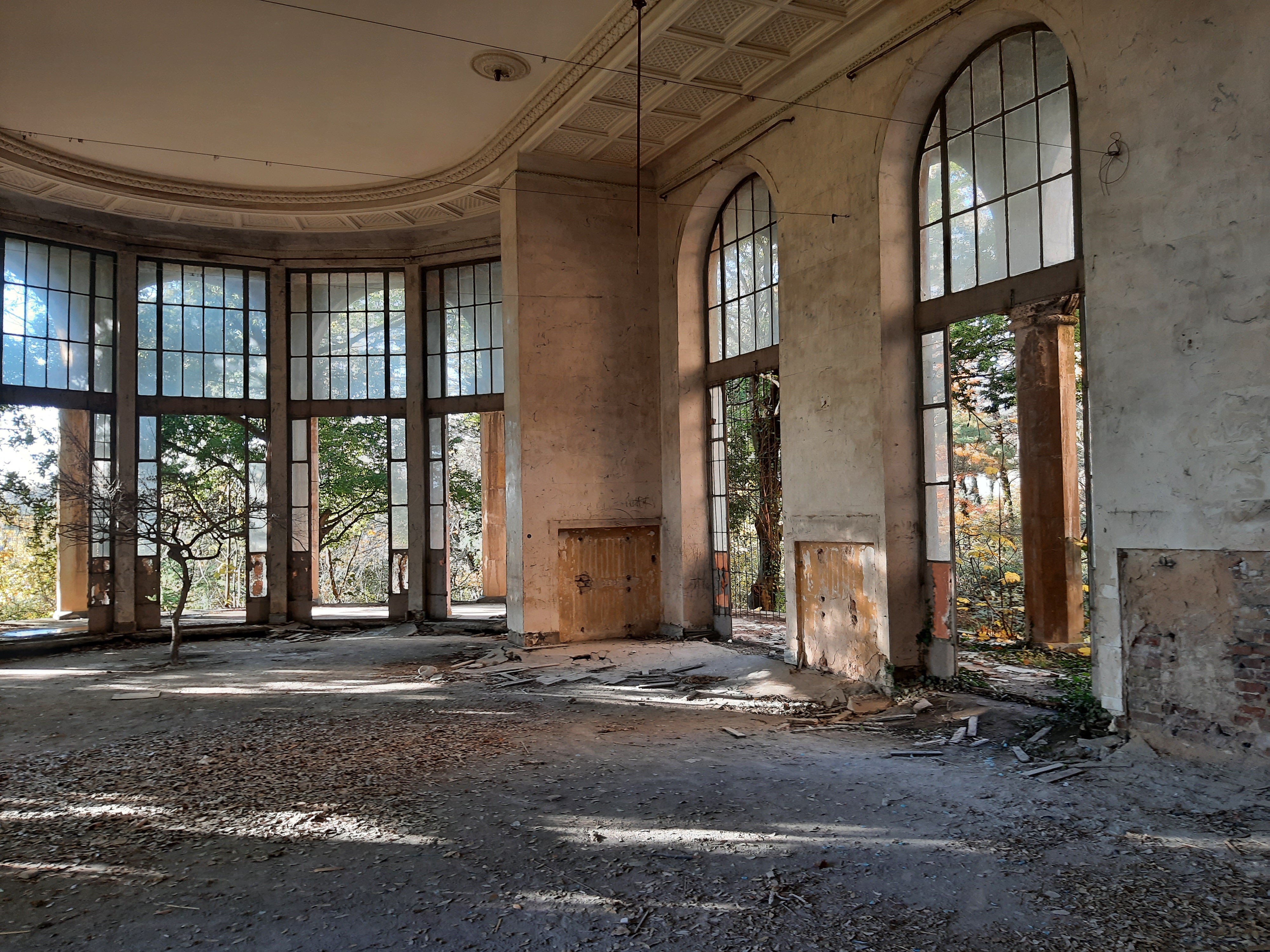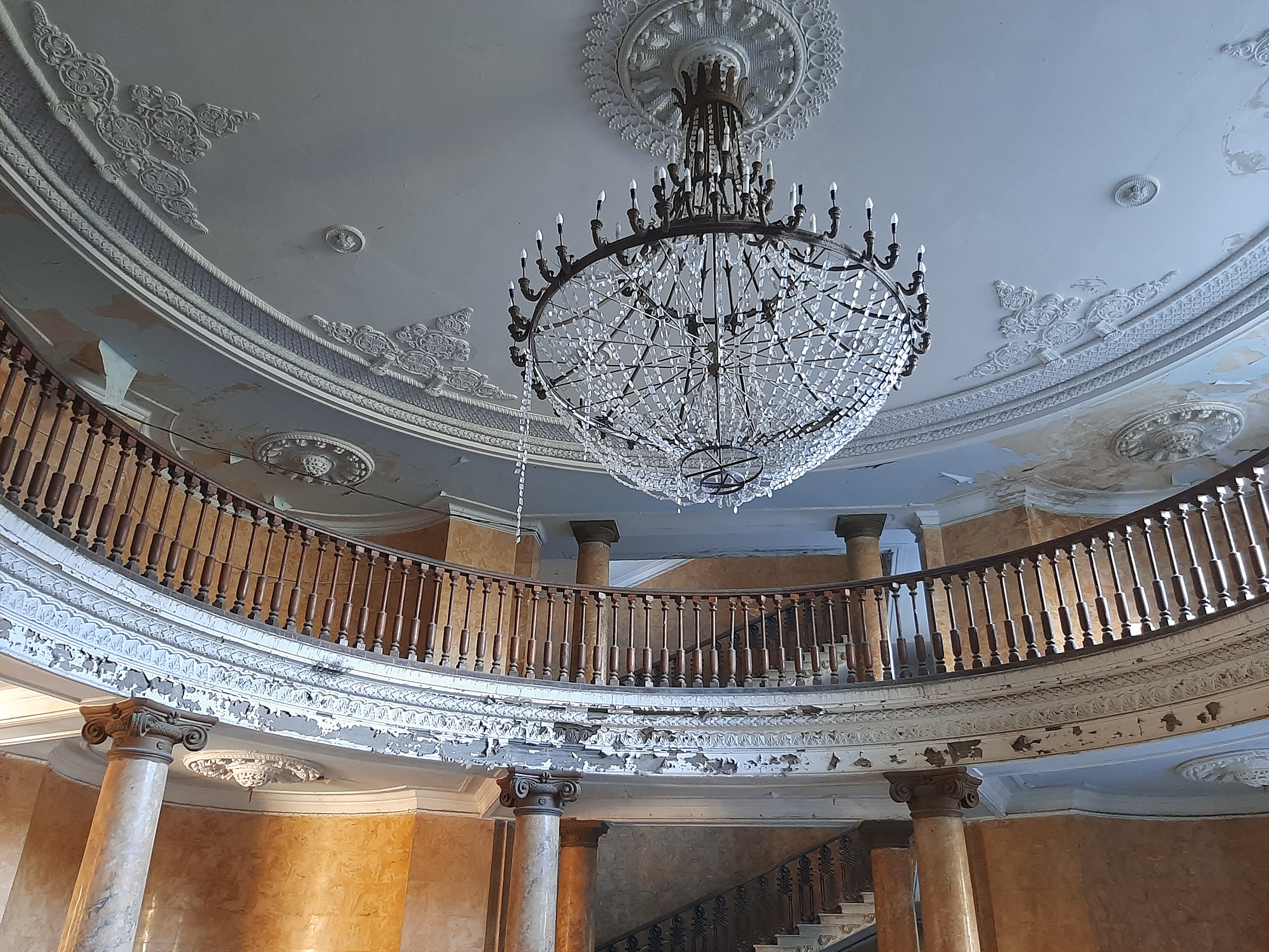 17-XI-2024 czas w podróży 9 godzin, ilość przejechanych kilometrów – 220 Dzisiaj minęły 4 tygodnie jak jestem w podróży. Do tej pory przejechałem 5 303 kilometrów, samochód oprócz awarii pompy wodnej spisuje się bez zarzutów. Sporo miał roboty na stepie (Udabno-Sighnaghi) i w górach w Vashlovani. Teraz pomału zaczynam już jechać z powrotem. Jednak pojadę najpierw obejrzeć ruiny/pozostałości po sanatorium Medea koło miasta Ckaltubo, później dwa kaniony, później do Ushguli (wioski w górach), później skalne miasto Vardzia, a później nie wiem co jeszcze. O opuszczonym sanatorium przeczytałem w Internecie i uznałem że warto go zwiedzić. Po odkryciu wód leczniczych zaczęto rozbudowywać infrastrukturę sanatoryjną, a w latach 30 miasteczko uzyskało status państwowego uzdrowiska. Wielokrotnie też przebywał tu Stalin. W latach rozkwitu pociągi z Moskwy dowoziły tu kuracjuszy cztery razy dziennie. Po rozpadzie ZSRR powoli obiekty popadały w ruinę. Ponieważ lubię łazić po takich starych/zapomnianych budowlach to zeszło mi się sporo czasu. W głównym budynku pani, która tam siedziała, kazała mi zapłacić parę lari za możliwość zrobienia zdjęć i obejrzenia budynku od środka. Jeszcze teraz robią wrażenia marmurowe kolumny, żyrandol i sala koncertowa. Nawet nie miałem pojęcia jak duży był ten kompleks sanatoryjny. Gdy jechałem przez drzewa prześwitywały olbrzymie budynki, a właściwie ich szkielety. Pomyślałem sobie że w nocy to dopiero musi tutaj wiać grozą. Dalej już pojechałem do kanionu Martwili, gdzie zostałem na noc na parkingu.