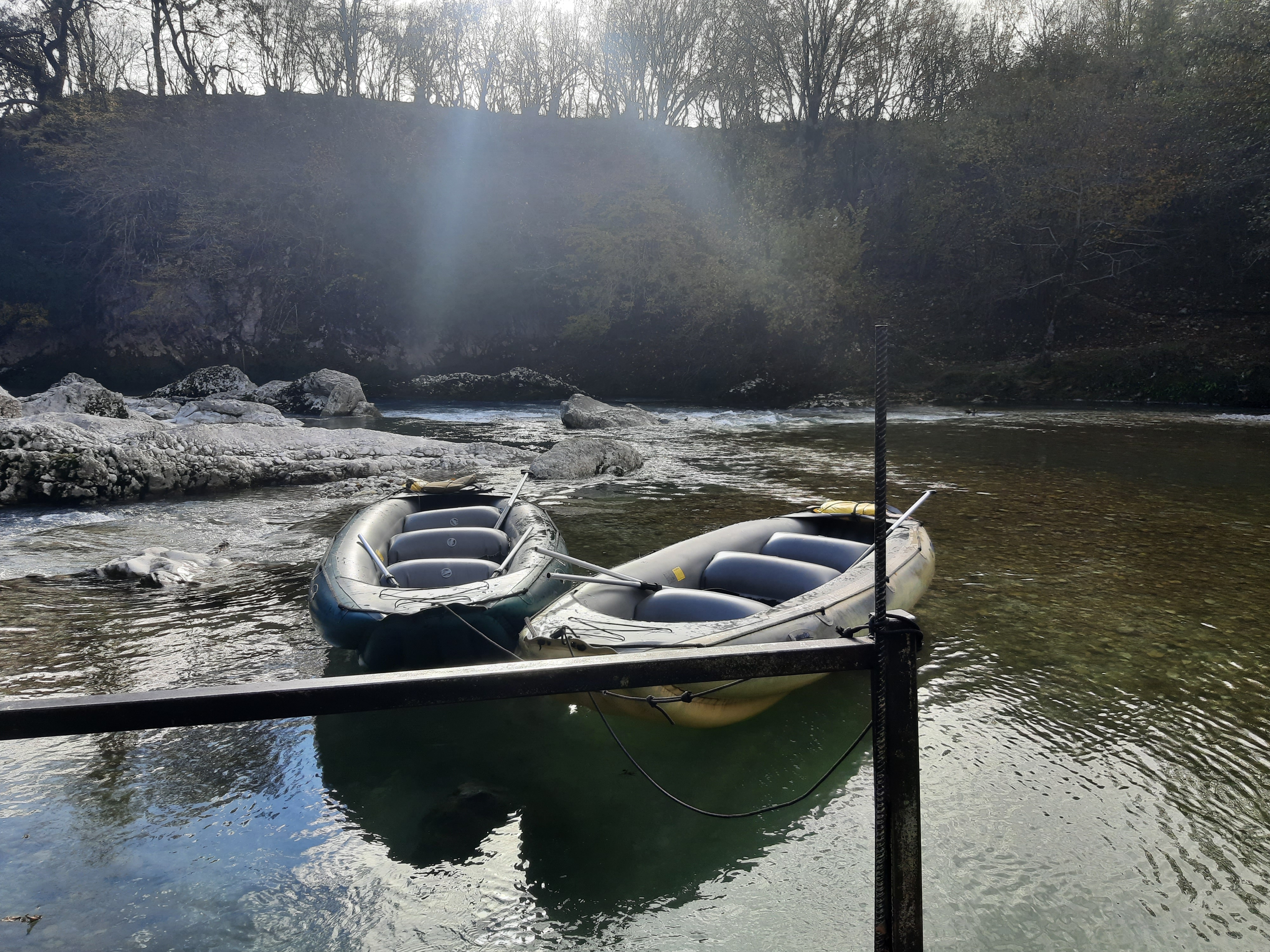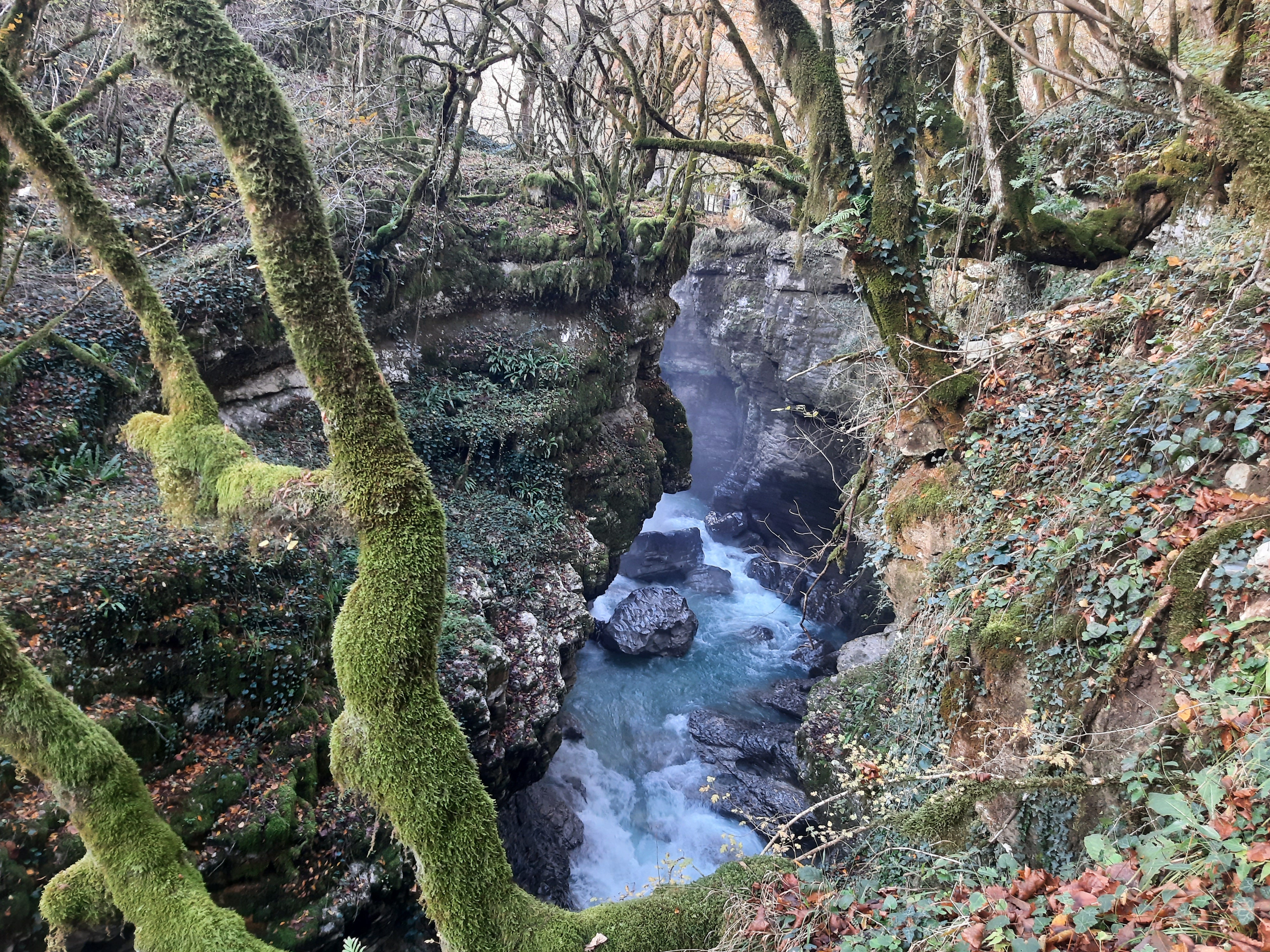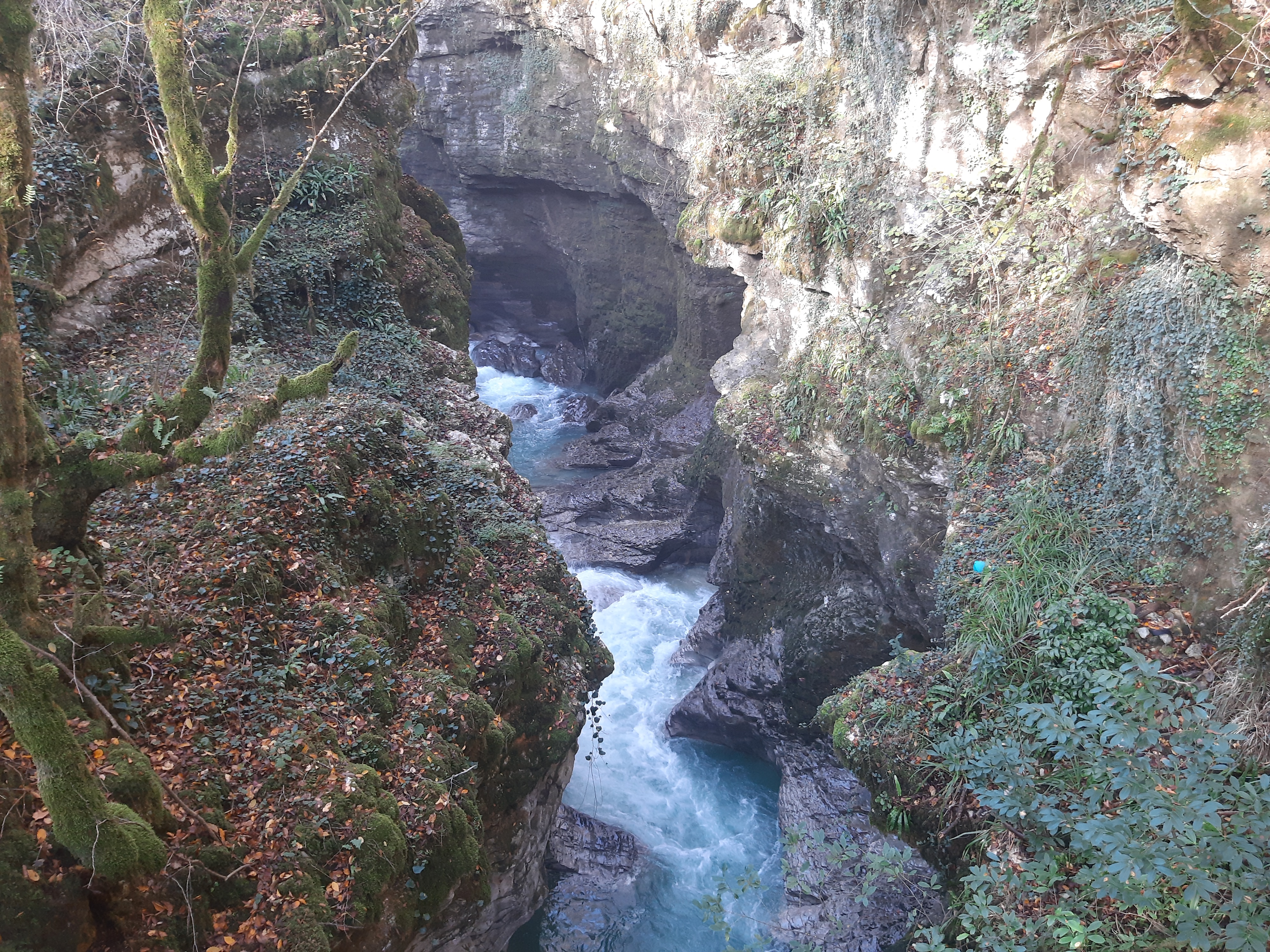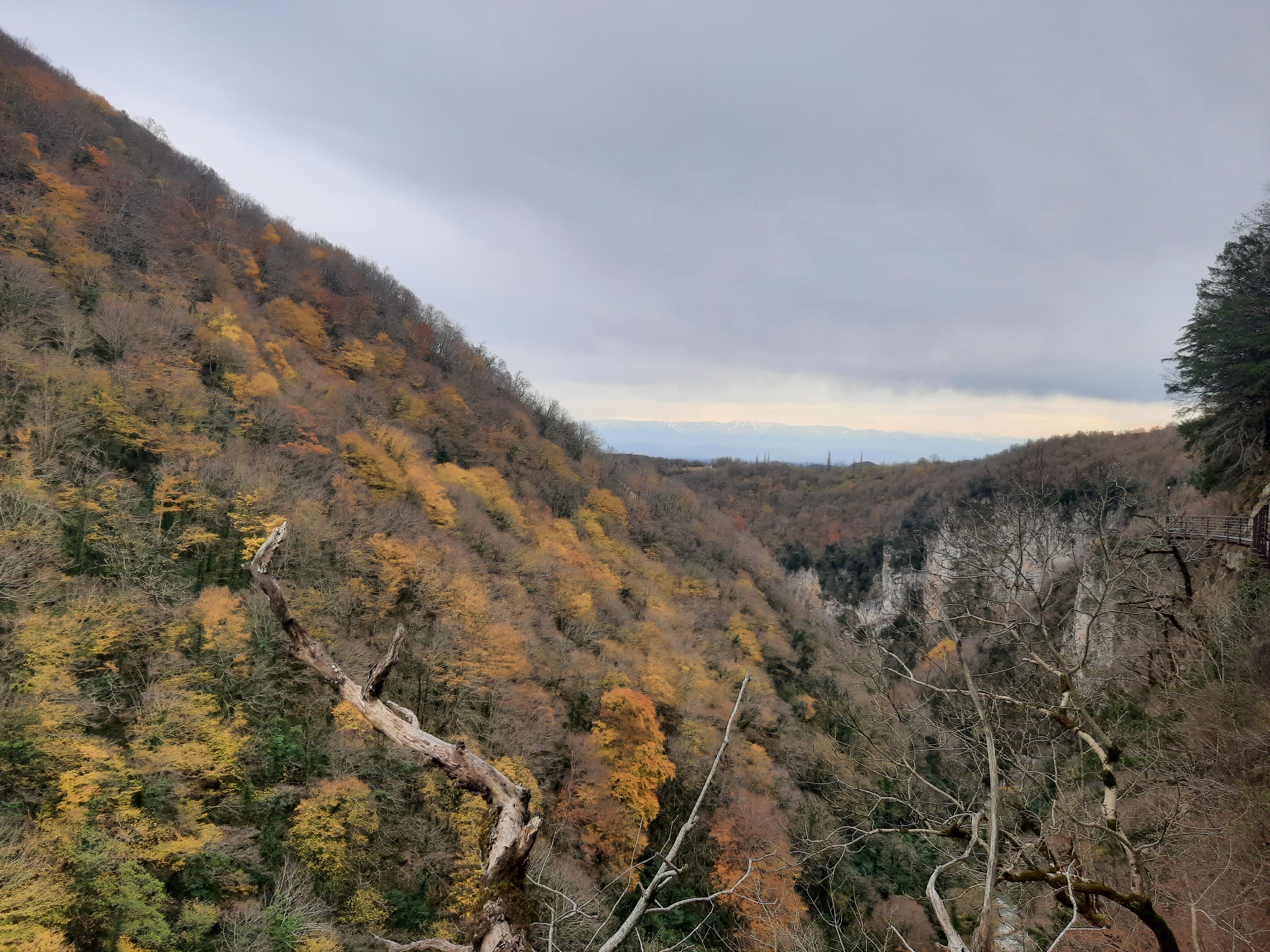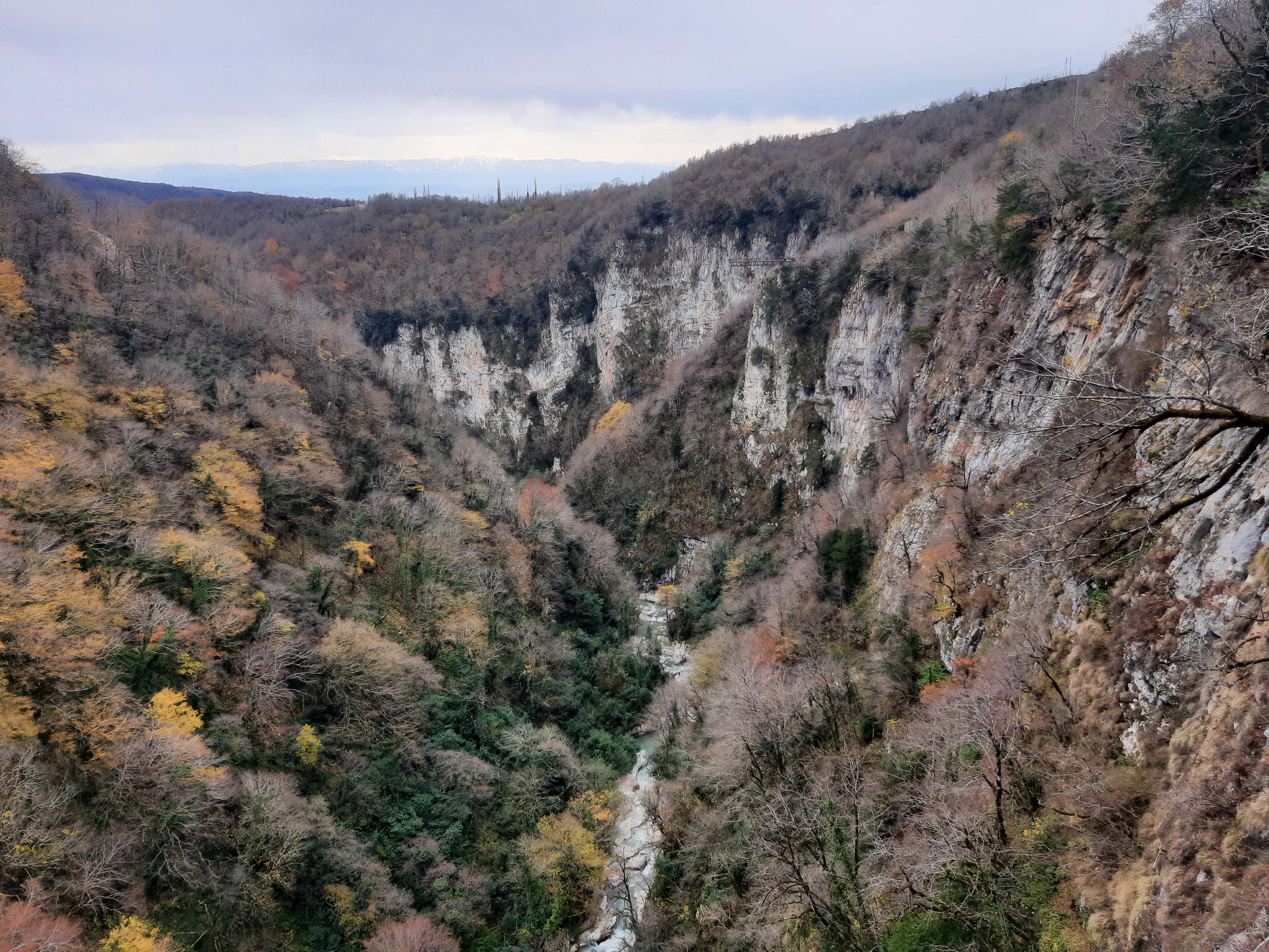 Czas w podróży 5 godzin, ilość przejechanych kilometrów – 70 Żeby sobie oczy nacieszyć przyrodą postanowiłem pojechać i zobaczyć kanion Martwili i kanion Okatse. Ten pierwszy można było obejrzeć idąc po wyznaczonych kładkach i też zobaczyć od strony wody płynąć pontonem. Wybrałem opcję full, (bilet do kosztował 40 lar) i razem z przepłynięciem się pontonem wśród skał. Ładne widoki, „rejs” trwał może wszystkiego ze 20 minut. Jeszcze można było przejść się pieszo wśród skałek i to wszystko. No może to nie był jakiś ósmy cud świata, ale zawsze to coś innego niż droga. Po tych atrakcjach pojechałem zobaczyć drugi kanion (Okatse), który był w sumie niedaleko. Jak zajechałem na miejsce cały parking był zajęty przez małe busy (Delicta) z napędem na 4 koła. Grupka kierowców wskazała mi miejsce gdzie mam stanąć i jak tylko się zatrzymałem od razu przyszli oglądać mojego Gaza. Wszyscy byli zainteresowani jaki to silnik, ile pali, czy szybko jedzie i jeszcze sporo innych pytań. Gdy już skończyli pytać wtedy ja zapytałem gdzie mam iść i co oglądać. Poszedł ze mną do kasy jeden z kierowców i po drodze zaczął mnie namawiać żebym zostawił swój samochód na parkingu, a on za 60 lari mnie gdzieś tam zawiezie, później będzie czekał i przywiezie z powrotem. Ponieważ połowy z tego co mówił nie zrozumiałem pomyślałem sobie dobrze i tak nie wiem gdzie iść/jechać i co oglądać. Poszedłem za kierowcą do Łady Niwy, która nie dość że miała popękaną szybę to wyglądała jakby zaraz miała się rozpaść. Nie ma co wybrzydzać, jedziemy, ku mojemu zdziwieniu „Ładziarka” doskonale sobie radziła na tej drodze, a droga faktycznie nie dla mojego Gaza – za wąska. Pan mnie zostawił przed wejściem na teren, wytłumaczył że mam iść, i że będzie czekał na końcu tej drogi. Bardzo malownicze widoki, a najfajniejsze było to, że szło się taką ażurową metalową chodnią podwieszoną do skał. No ktoś kto ma lęk wysokości myślę że czuł by się fatalnie, bo pod nogami widać było kilkusetmetrową przepaść (no może trochę przesadziłem pisząc kilkusetmetrową). Faktycznie na końcu drogi czekał kierowca razem z innymi kierowcami. Ten „mój” musiał tym innym naopowiadać o mnie i moim samochodzie, bo jak tylko podszedłem do nich, to powiedzieli że jestem maładiec i jeszcze chcieli mnie poczęstować szklanką wina. Ładnie podziękowałem, wymawiając się tym że jeszcze daleka droga przede mną. Na noc zatrzymałem się gdzieś na skraju jakiejś wioski