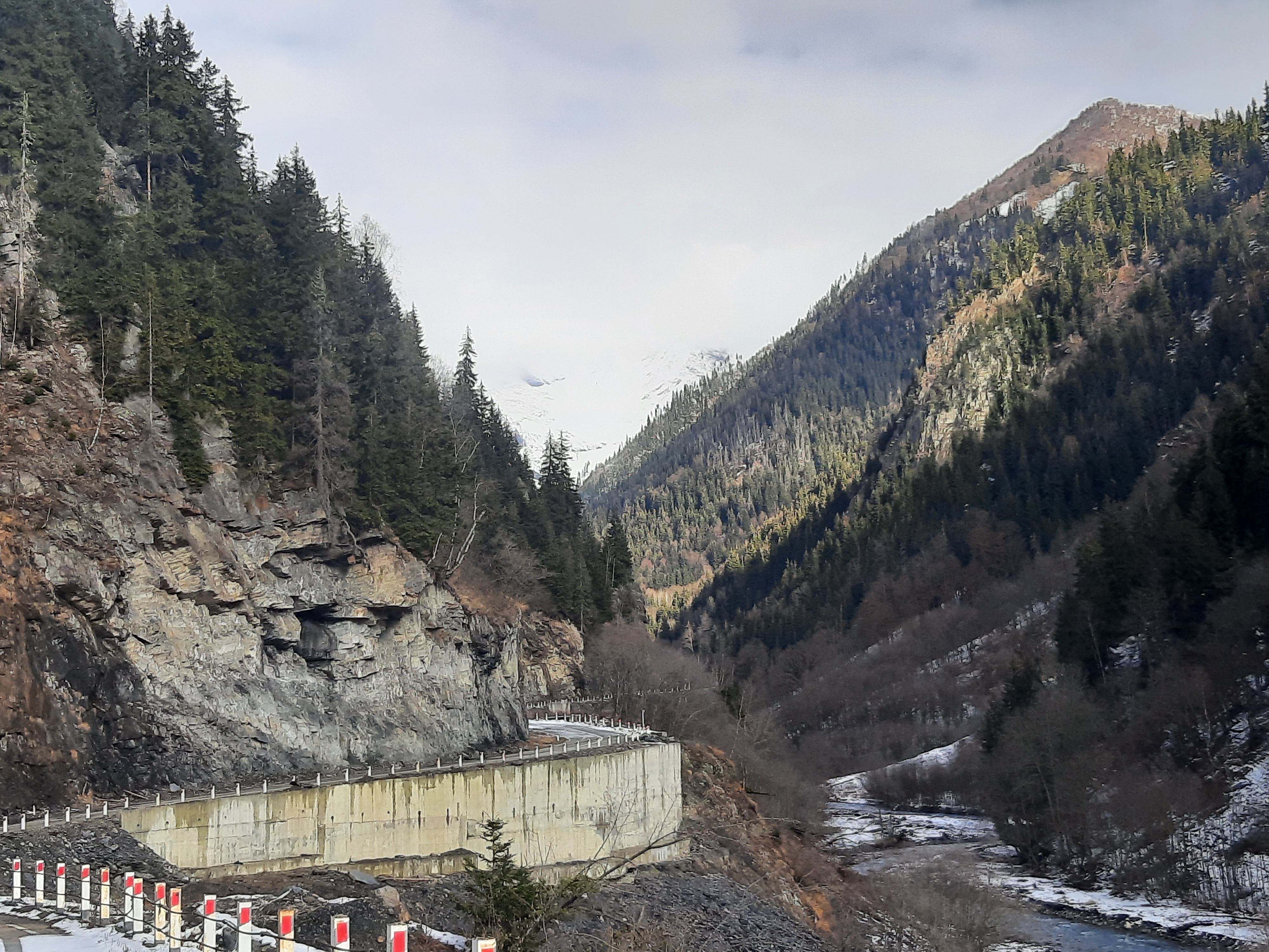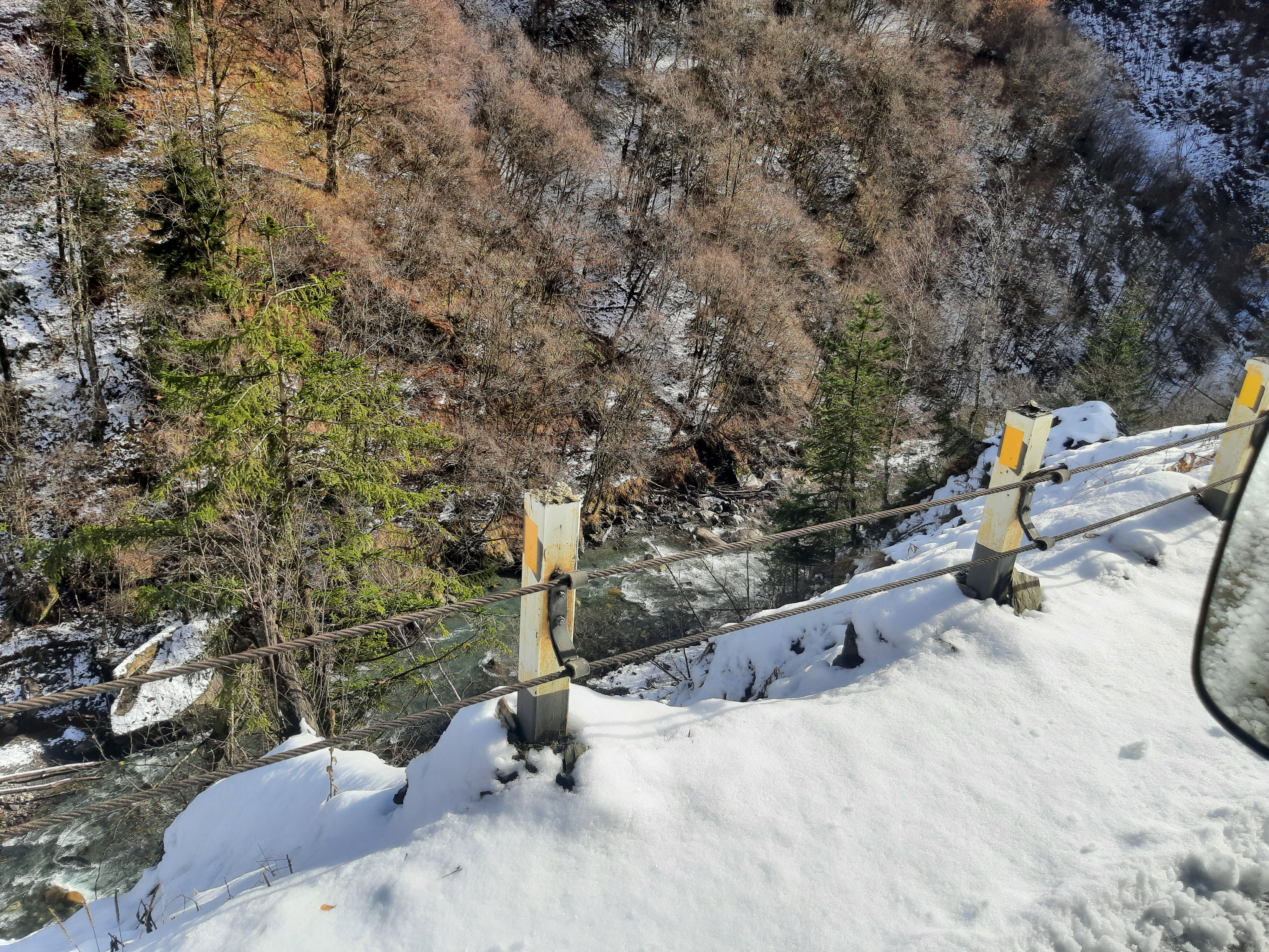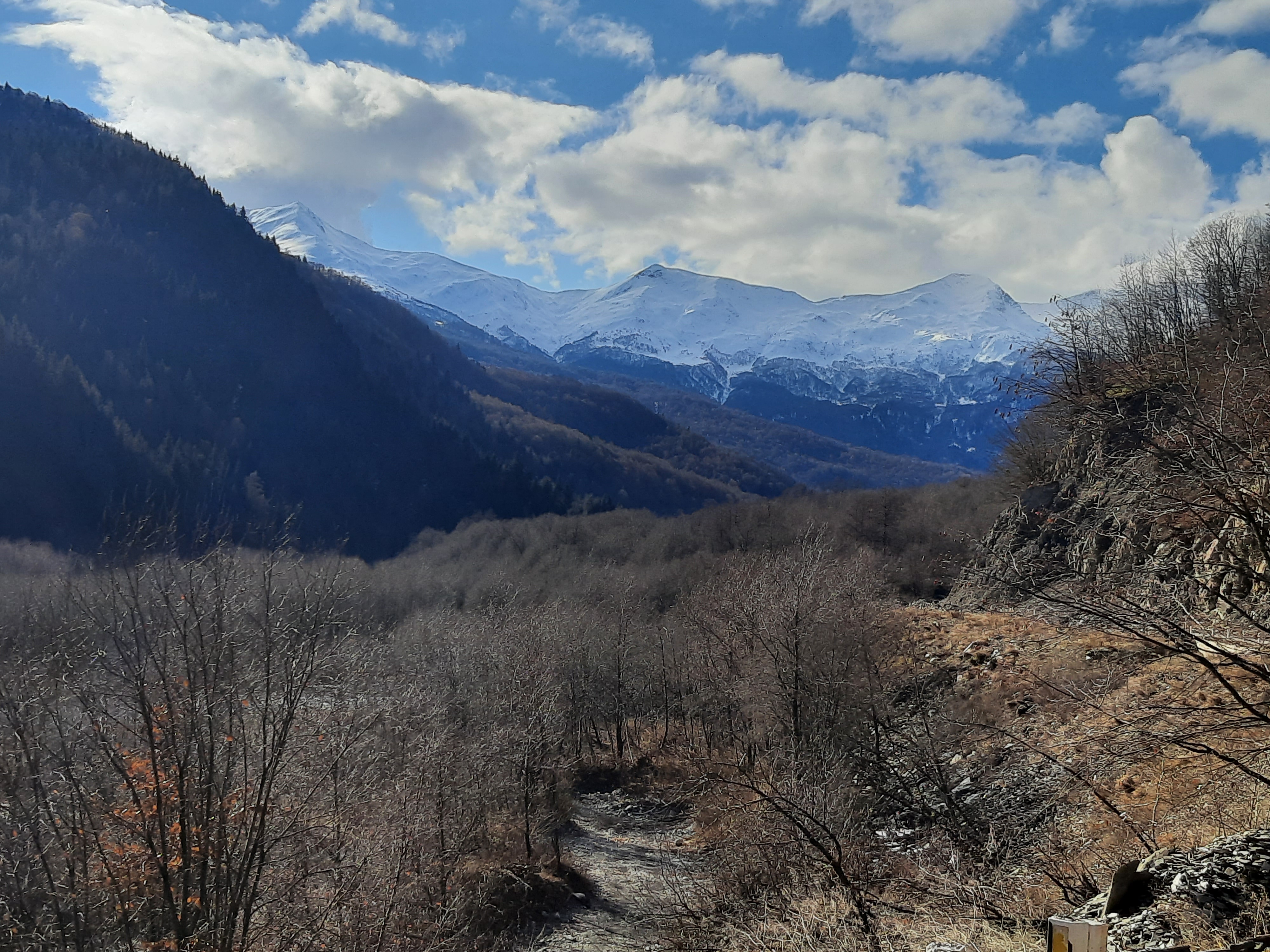 Czas w podróży 9 godzin, ilość przejechanych kilometrów – 150 Po nocy spędzonej pod gościnnym dachem Tułuli i Żaro, czas ruszać w drogę. Jeszcze rano zjedliśmy wspólnie śniadanie, poprosiłem o możliwość zrobienia in zdjęcia i jadę. Droga na początku taka zwykła, trochę zakrętów, pod górę na dół. W sumie nic trudnego, i widoki coraz ładniejsze. Po kilkunastu kilometrach droga się pogorszyła ze względu na to że w niektórych miejscach była zniszczona przez schodzące lawiny kamienne. Dla mojego samochodu to żaden problem, zresztą wyprzedzały mnie samochody terenowe które szybciej i sprawniej się poruszały na tej wąskiej drodze. Problemy zaczęły się już wyżej, tzn. zaczął się śnieg na drodze. Z początku niewiele, ale w miarę dalszej jazdy pod górę było go coraz więcej. Auta, które mnie wcześniej wyprzedzały, teraz mijały mnie jadąc w przeciwną stroną niż ja. Tak sobie pomyślałem że chyba jest jakiś kłopot tam wyżej, skoro oni wracają. I faktycznie po następnych parunastu kilometrach zauważyłem ślady na drodze samochodów, które zawracały. Droga wąska, z jednej strony skały, z drugiej przepaść, ślisko i pod górę. Te małe samochody widać po śladach zawracały na kilka razy, no to ciekawe gdzie ja zawrócę, jak nie uda mi się pojechać dalej. Zatrzymałem jakiegoś kierowcę w Toyocie Land Cruiser, który wracał i zapytałem go o drogę i czy dojadę do Ushguli. Droga zasypana i ślisko, a do Ushguli i tak nie dojedziesz powiedział. No to trzeba zawracać, tylko jak i gdzie, jak wszędzie wąsko. Jadąc dalej szukałem trochę szerszego miejsca. Gaz, po pierwsze ma bardzo ograniczony skręt, po drugie wspomaganie takie byle jakie. Chcąc zakręcić często muszę robić to na „bujanego” czyli trochę bujać samochodem żeby móc skręcić kierownicą. Gdy udało mi się znaleźć szerszy kawałek drogi, z duszą na ramieniu na kilka razy udało mi się zawrócić. No to nici z mojej wycieczki do wiosek, trudno i tak byłem przygotowany że nie dojadę, ale trzeba było spróbować. Jeszcze zrobiłem sobie obiad w ładnym miejscu nad rzeką, trochę zdjęć. Po drodze w jakiejś wiosce zobaczyłem przed prywatnym domem jakiś pomnik, niestety plac był ogrodzony i zamknięty. Z daleka wyglądał jak Stalin, ale czy to możliwe, nie wiem. Nocleg wypadł gdzieś przy posterunku Policji.