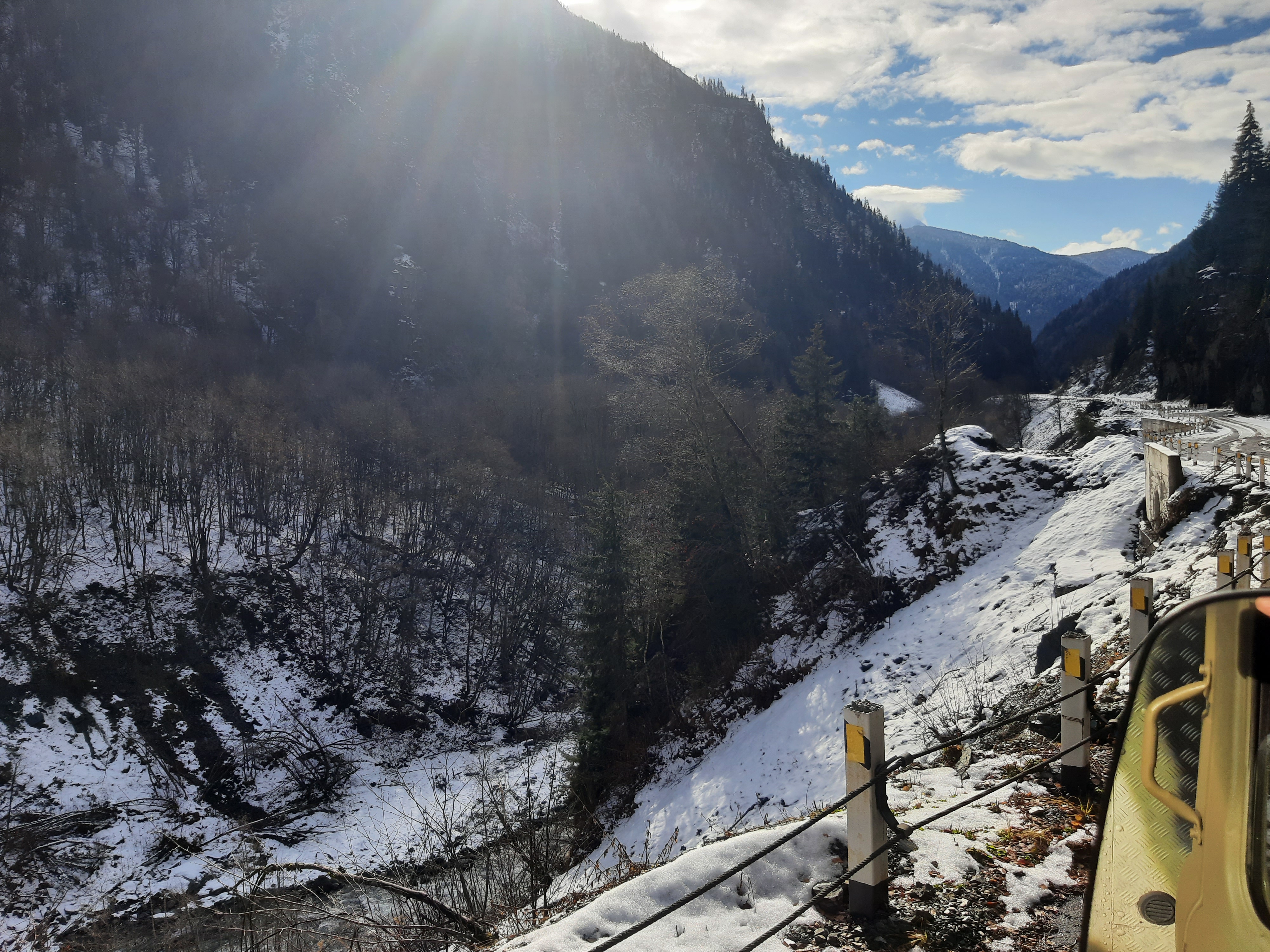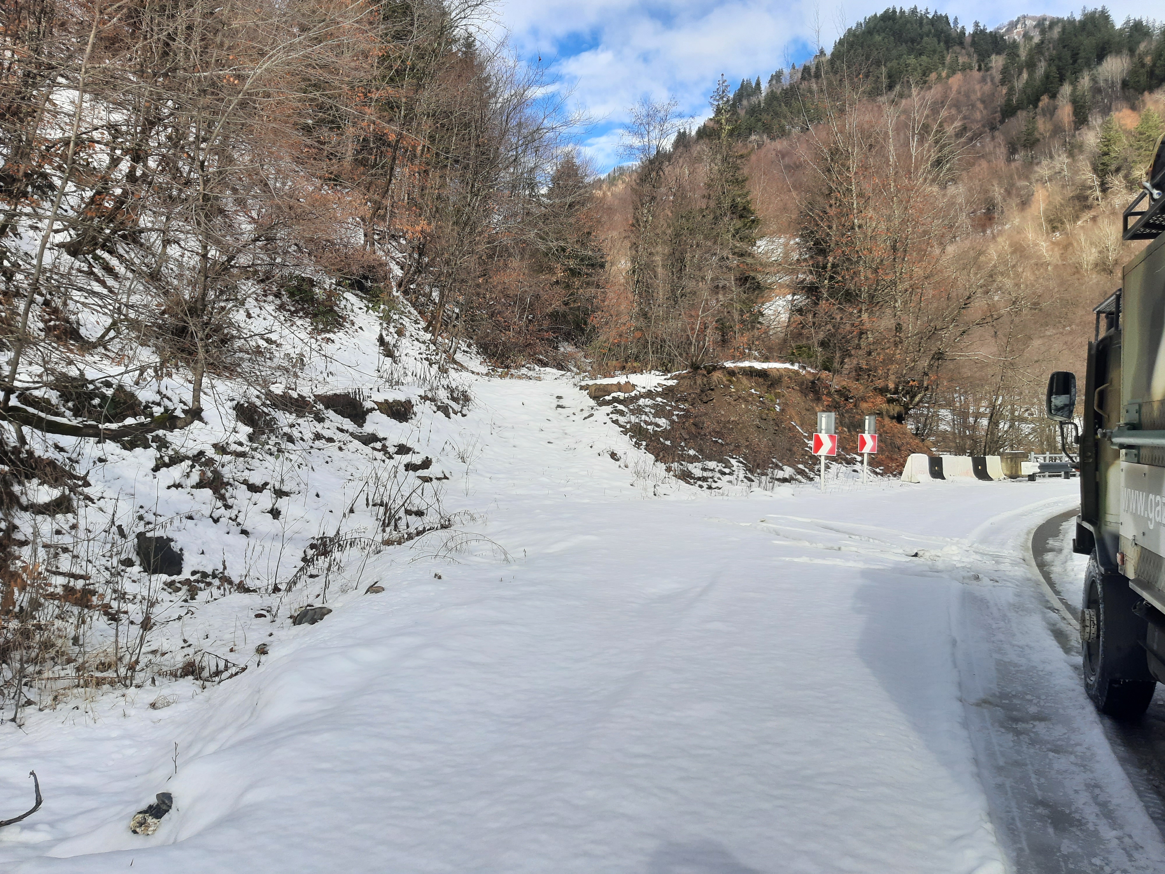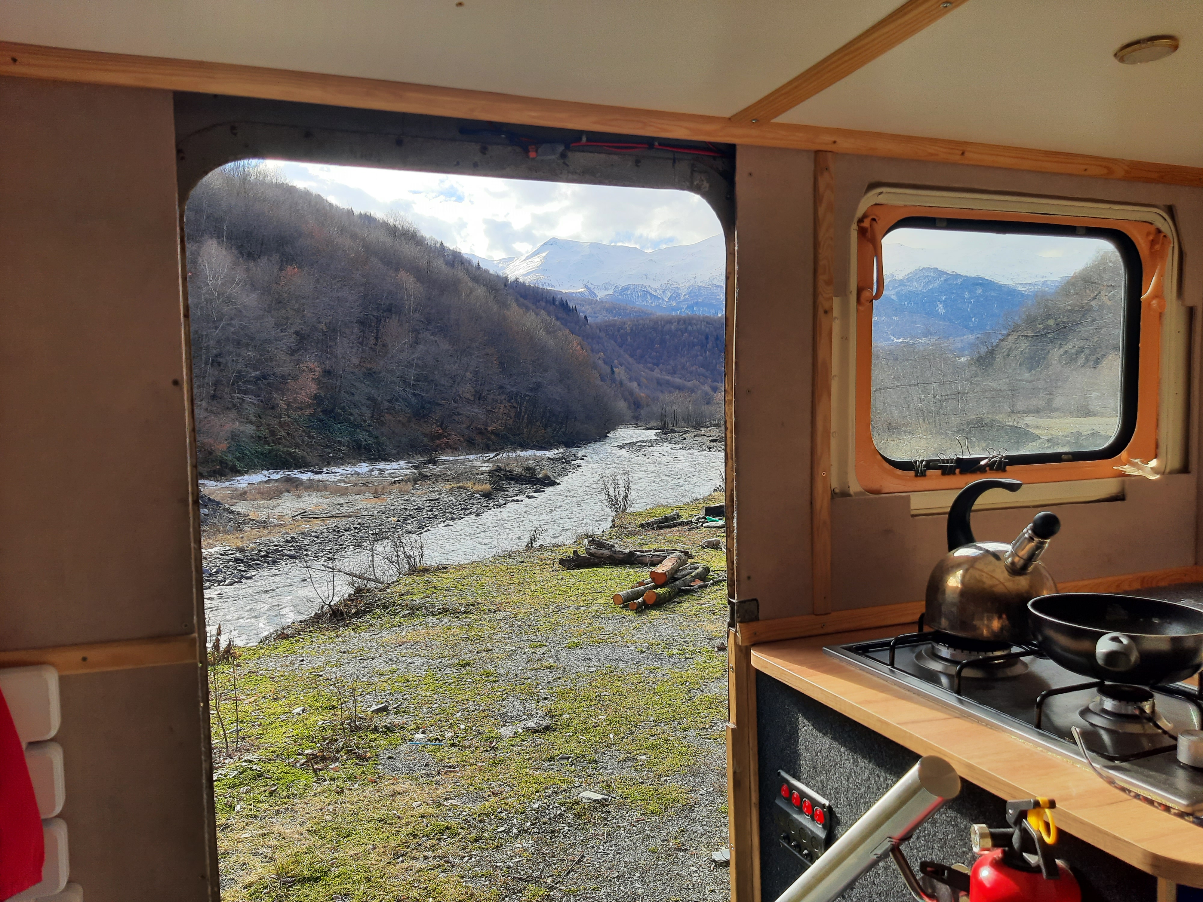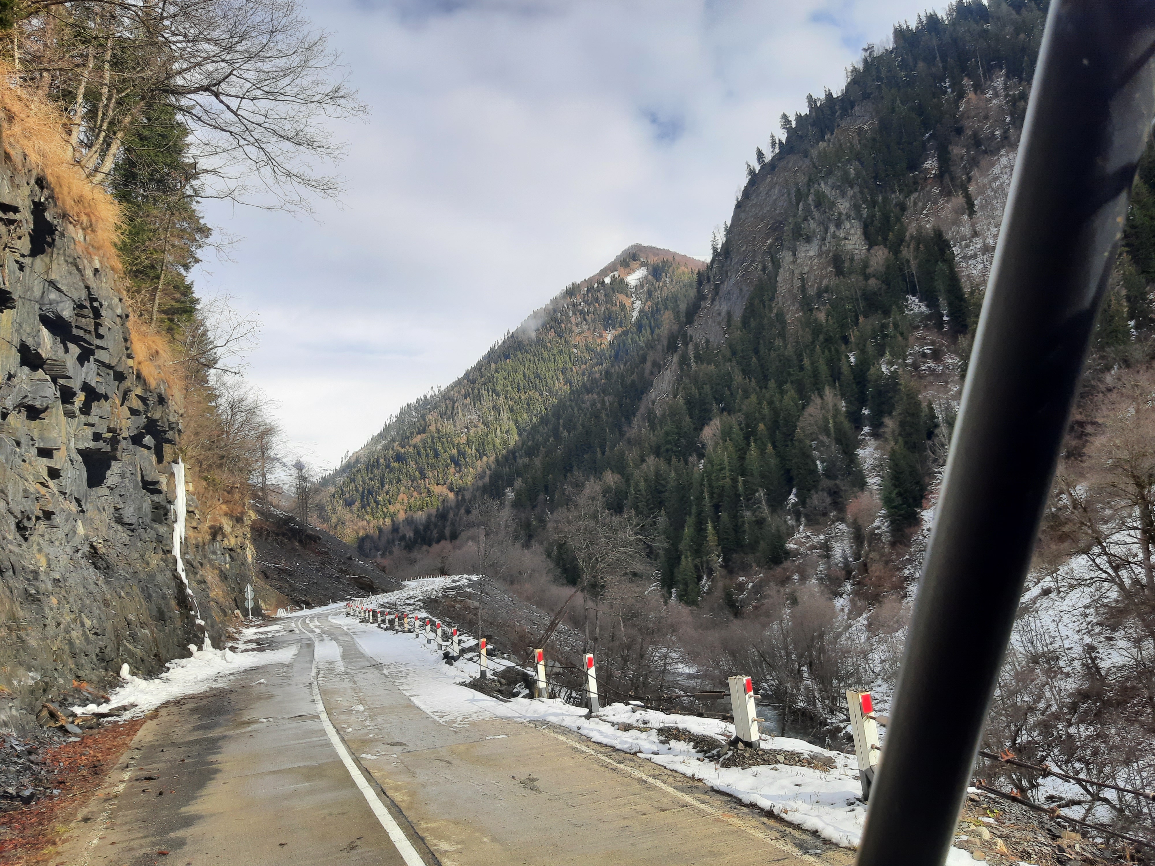 Czas w podróży 9 godzin, ilość przejechanych kilometrów – 150 Po nocy spędzonej pod gościnnym dachem Tułuli i Żaro, czas ruszać w drogę. Jeszcze rano zjedliśmy wspólnie śniadanie, poprosiłem o możliwość zrobienia in zdjęcia i jadę. Droga na początku taka zwykła, trochę zakrętów, pod górę na dół. W sumie nic trudnego, i widoki coraz ładniejsze. Po kilkunastu kilometrach droga się pogorszyła ze względu na to że w niektórych miejscach była zniszczona przez schodzące lawiny kamienne. Dla mojego samochodu to żaden problem, zresztą wyprzedzały mnie samochody terenowe które szybciej i sprawniej się poruszały na tej wąskiej drodze. Problemy zaczęły się już wyżej, tzn. zaczął się śnieg na drodze. Z początku niewiele, ale w miarę dalszej jazdy pod górę było go coraz więcej. Auta, które mnie wcześniej wyprzedzały, teraz mijały mnie jadąc w przeciwną stroną niż ja. Tak sobie pomyślałem że chyba jest jakiś kłopot tam wyżej, skoro oni wracają. I faktycznie po następnych parunastu kilometrach zauważyłem ślady na drodze samochodów, które zawracały. Droga wąska, z jednej strony skały, z drugiej przepaść, ślisko i pod górę. Te małe samochody widać po śladach zawracały na kilka razy, no to ciekawe gdzie ja zawrócę, jak nie uda mi się pojechać dalej. Zatrzymałem jakiegoś kierowcę w Toyocie Land Cruiser, który wracał i zapytałem go o drogę i czy dojadę do Ushguli. Droga zasypana i ślisko, a do Ushguli i tak nie dojedziesz powiedział. No to trzeba zawracać, tylko jak i gdzie, jak wszędzie wąsko. Jadąc dalej szukałem trochę szerszego miejsca. Gaz, po pierwsze ma bardzo ograniczony skręt, po drugie wspomaganie takie byle jakie. Chcąc zakręcić często muszę robić to na „bujanego” czyli trochę bujać samochodem żeby móc skręcić kierownicą. Gdy udało mi się znaleźć szerszy kawałek drogi, z duszą na ramieniu na kilka razy udało mi się zawrócić. No to nici z mojej wycieczki do wiosek, trudno i tak byłem przygotowany że nie dojadę, ale trzeba było spróbować. Jeszcze zrobiłem sobie obiad w ładnym miejscu nad rzeką, trochę zdjęć. Po drodze w jakiejś wiosce zobaczyłem przed prywatnym domem jakiś pomnik, niestety plac był ogrodzony i zamknięty. Z daleka wyglądał jak Stalin, ale czy to możliwe, nie wiem. Nocleg wypadł gdzieś przy posterunku Policji.